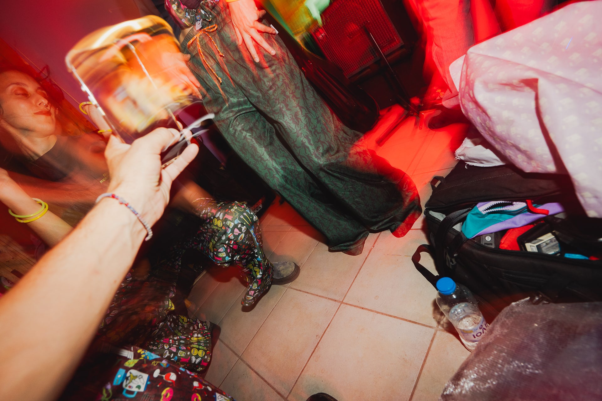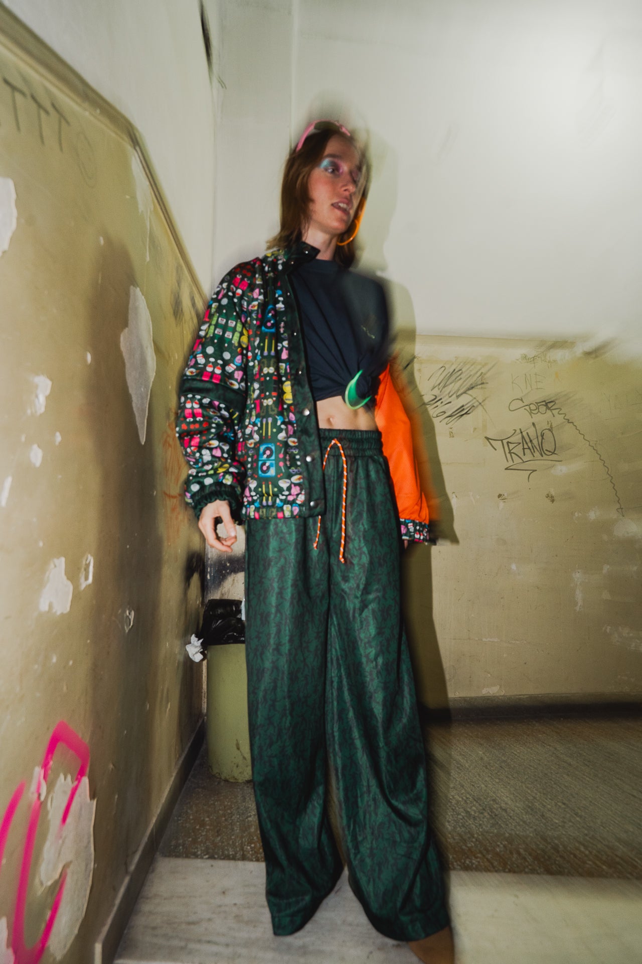 A bold, ultra-wide fit designed for comfort and movement, featuring a unique all-over print with dancing people.