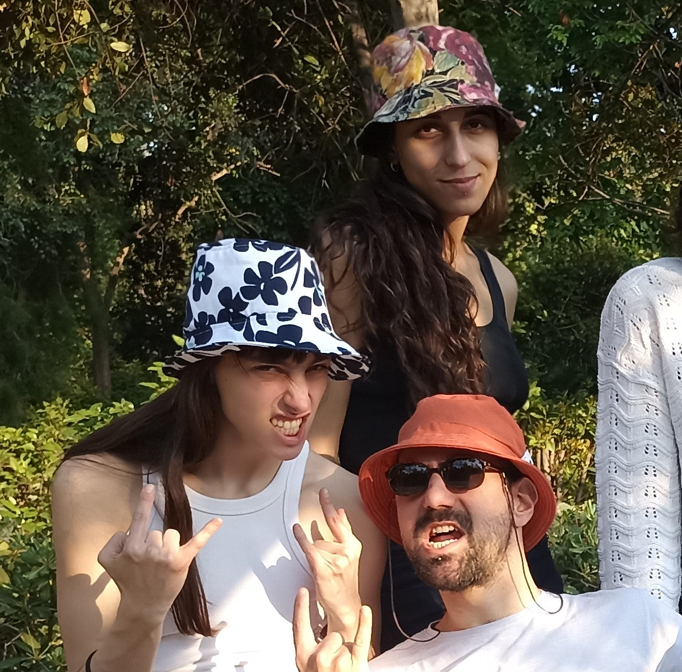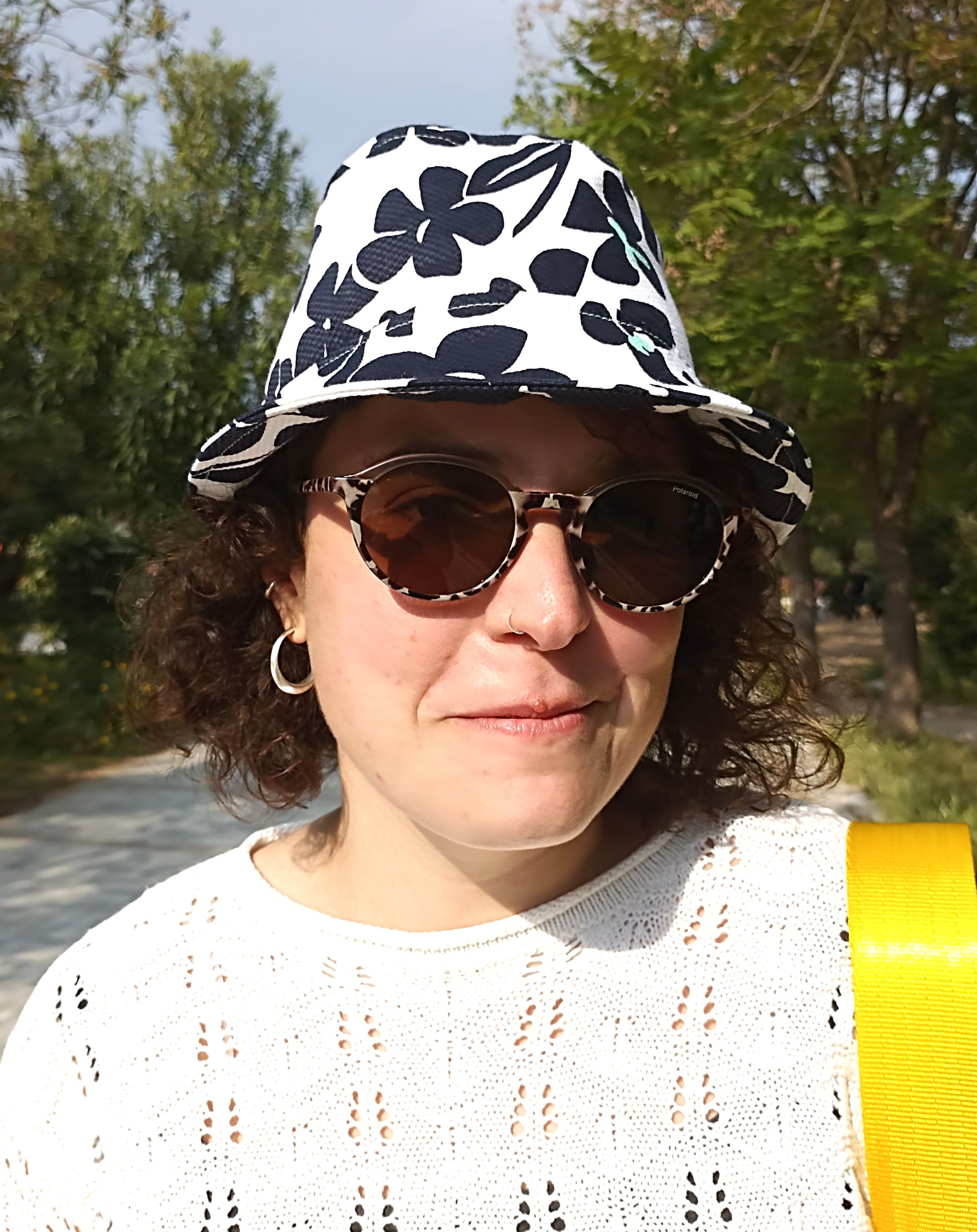 Handmade bucket hat from soft cotton fabric with dark blue flowers