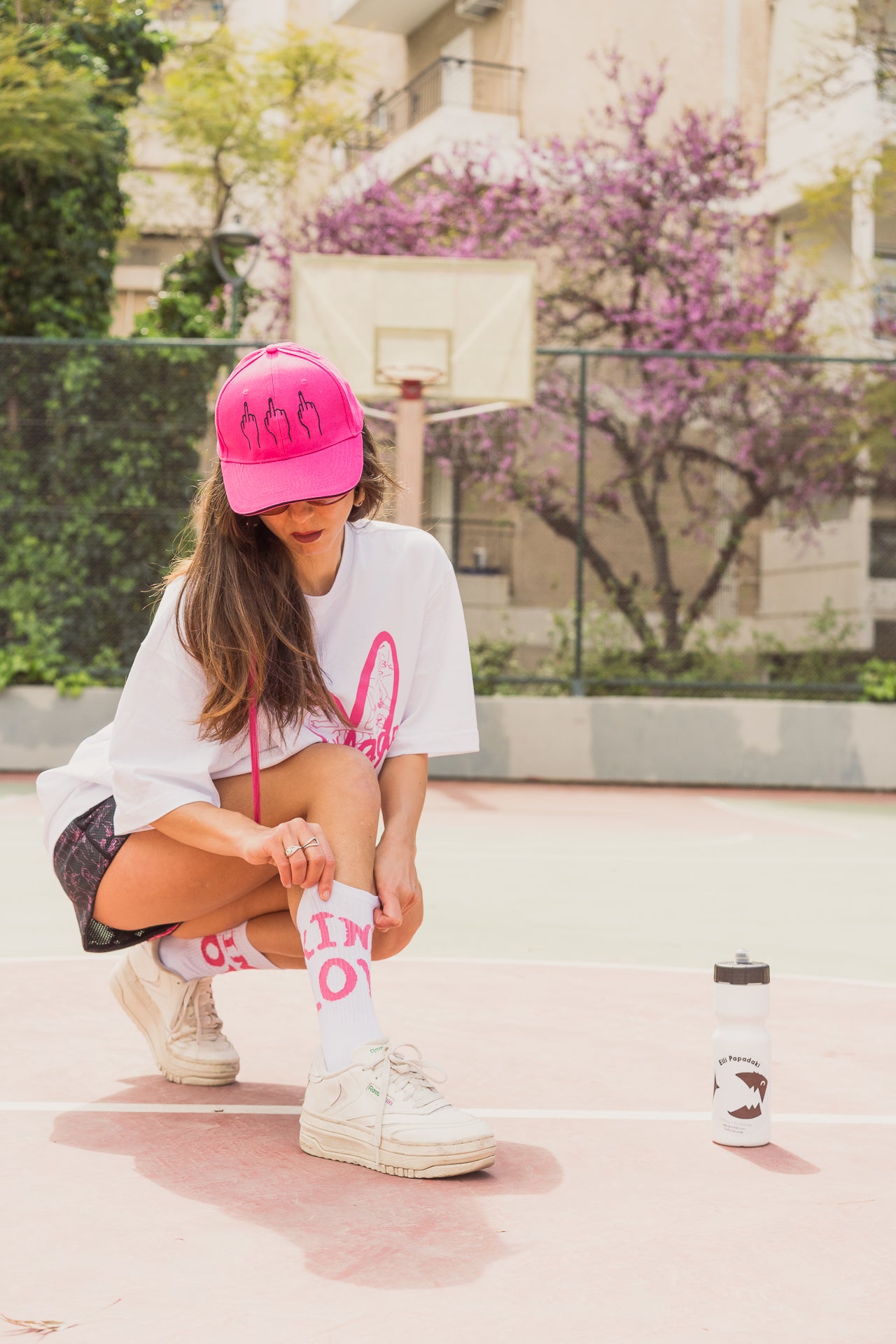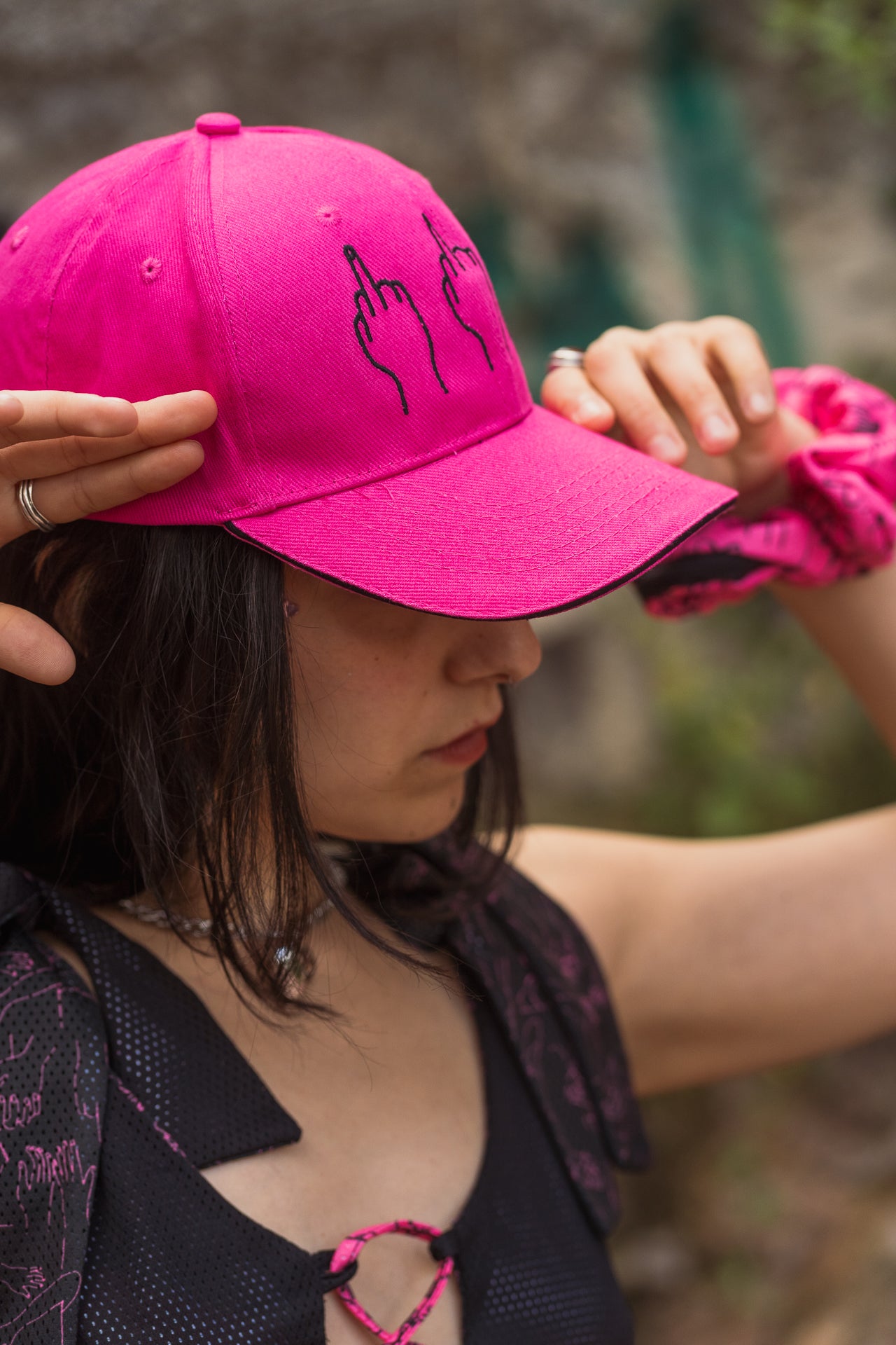 Embroidered cap in 2 colours, black or fuchsia, to choose from! Use it to elevate your streetwear or protect yourself on the beach. Either way its stylish and fun!