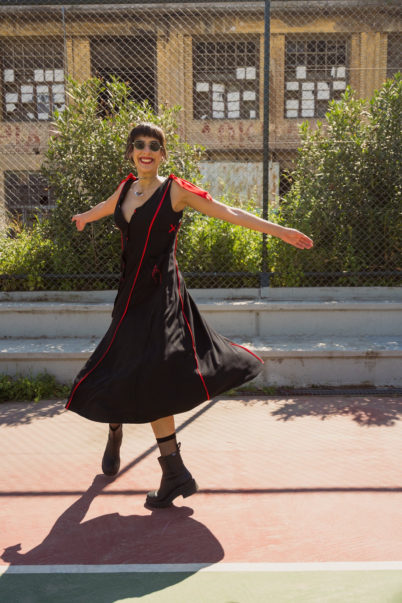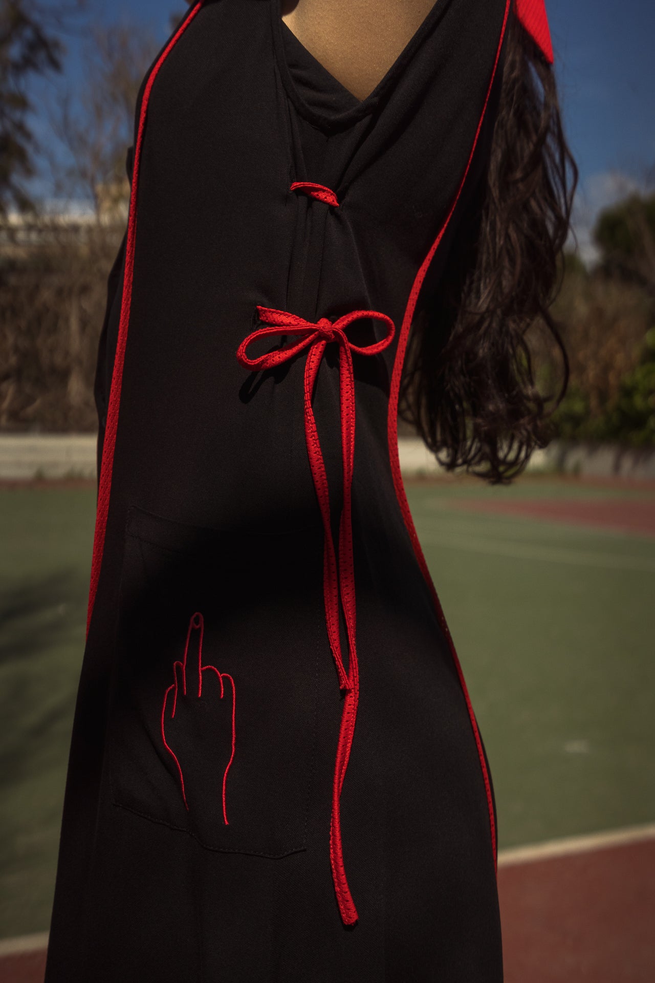 Dramatic and stylish the Fuck you/Luv you dress will be your key item for this summer! Made from Viscose, a soft, fine and breathable fabric, this is a dress to wear from morning to night. Adjust it with its cords, put the ribbons on, in your hair or at all and you 're ready to make an unforgettable appearance!