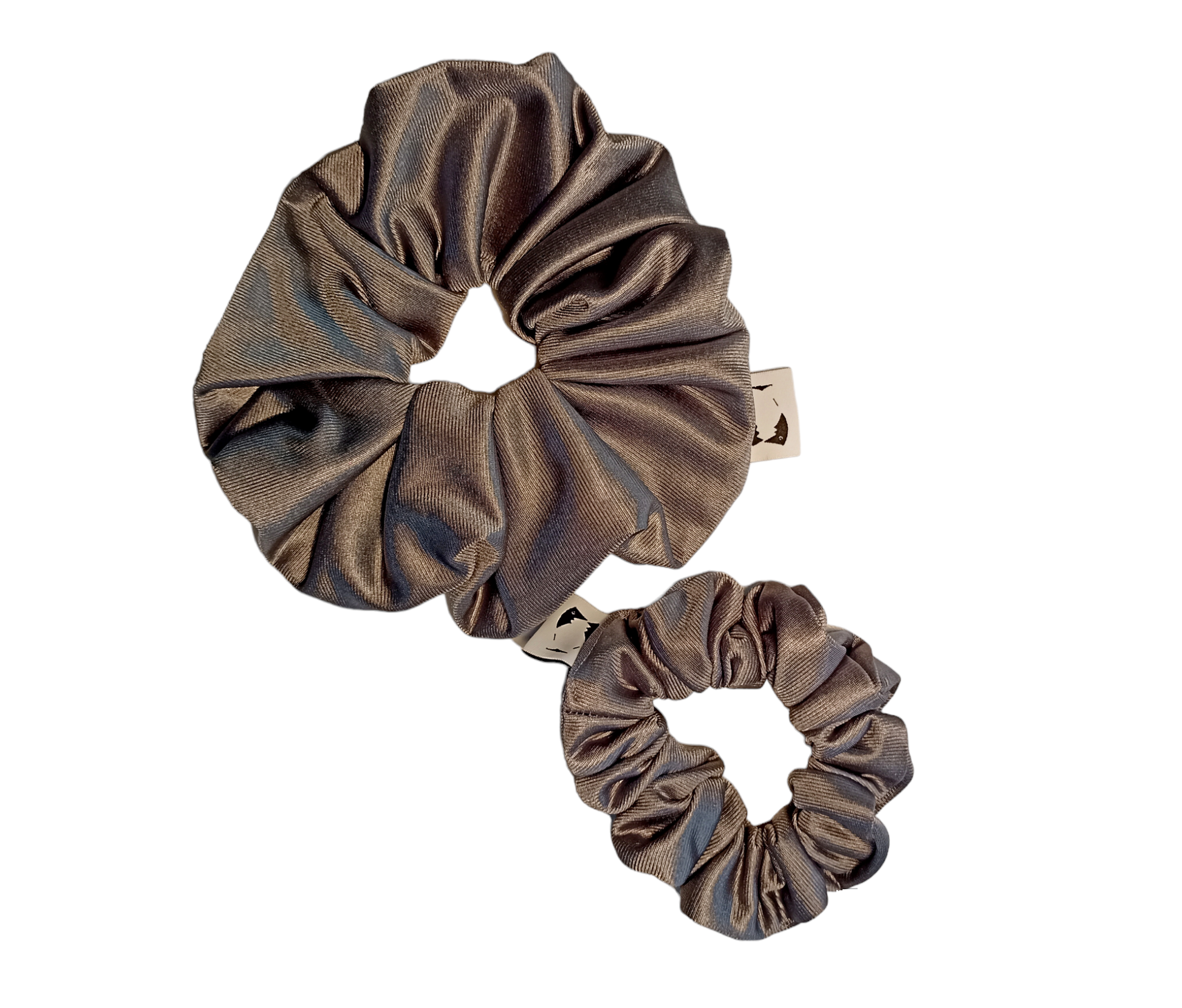 Metallic, shinny scrunchie in 2 colours: fuchsia and silver.