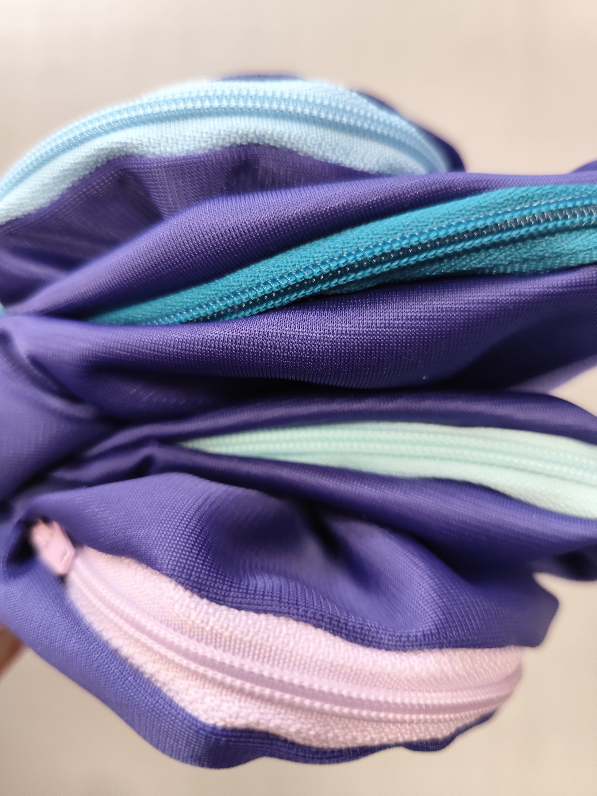 The ultimate accessoire is here and is a scrunchie with a zipper! Put in your coins, your earplugs, your car key and every little thing you may need in a party, an event or just for a walk!