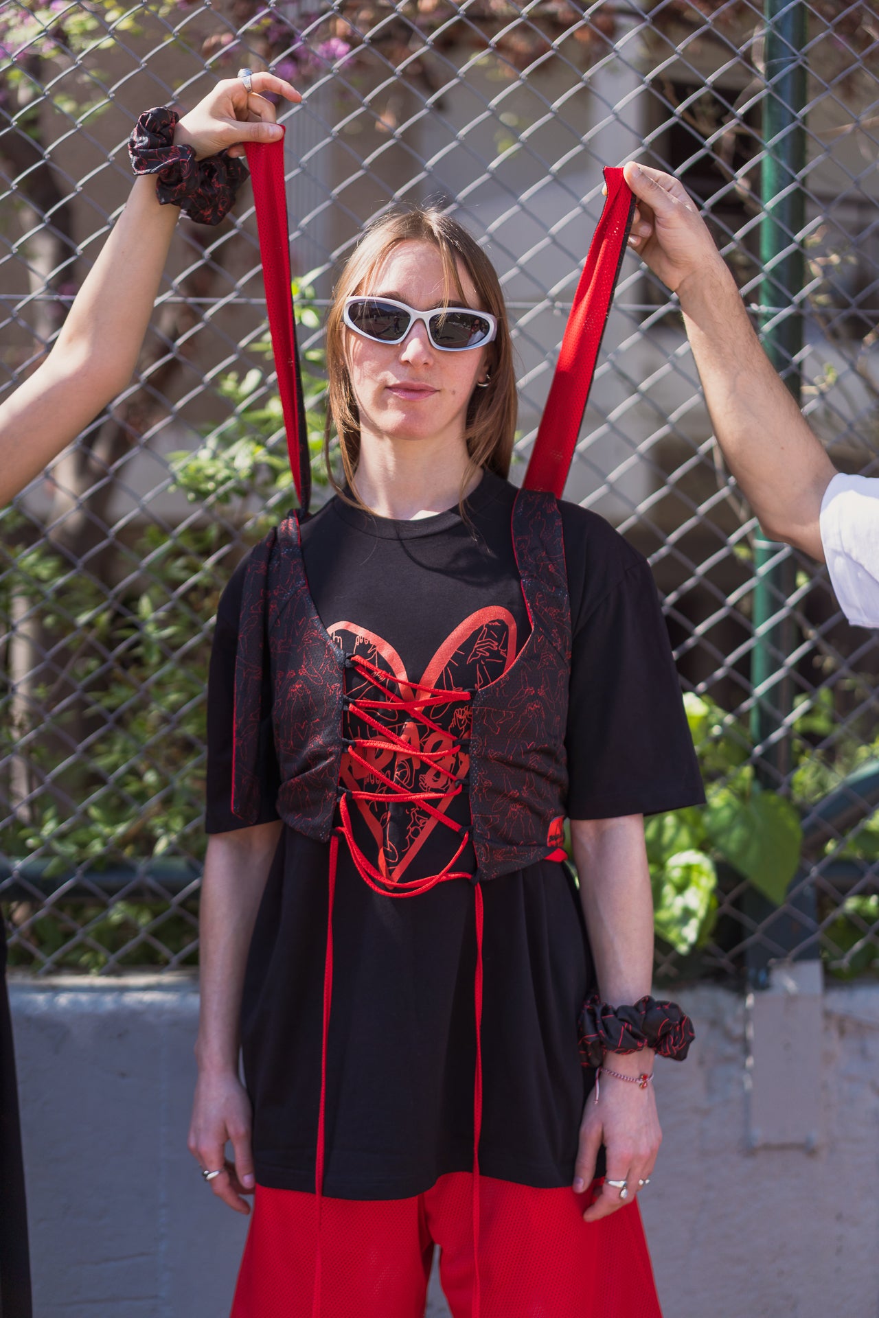 Hot hot hot! Double-sided top with front cord. Choose the side you prefer and make different outfits. Combine it with our shorts-basket or box- for a total and astonishing look!