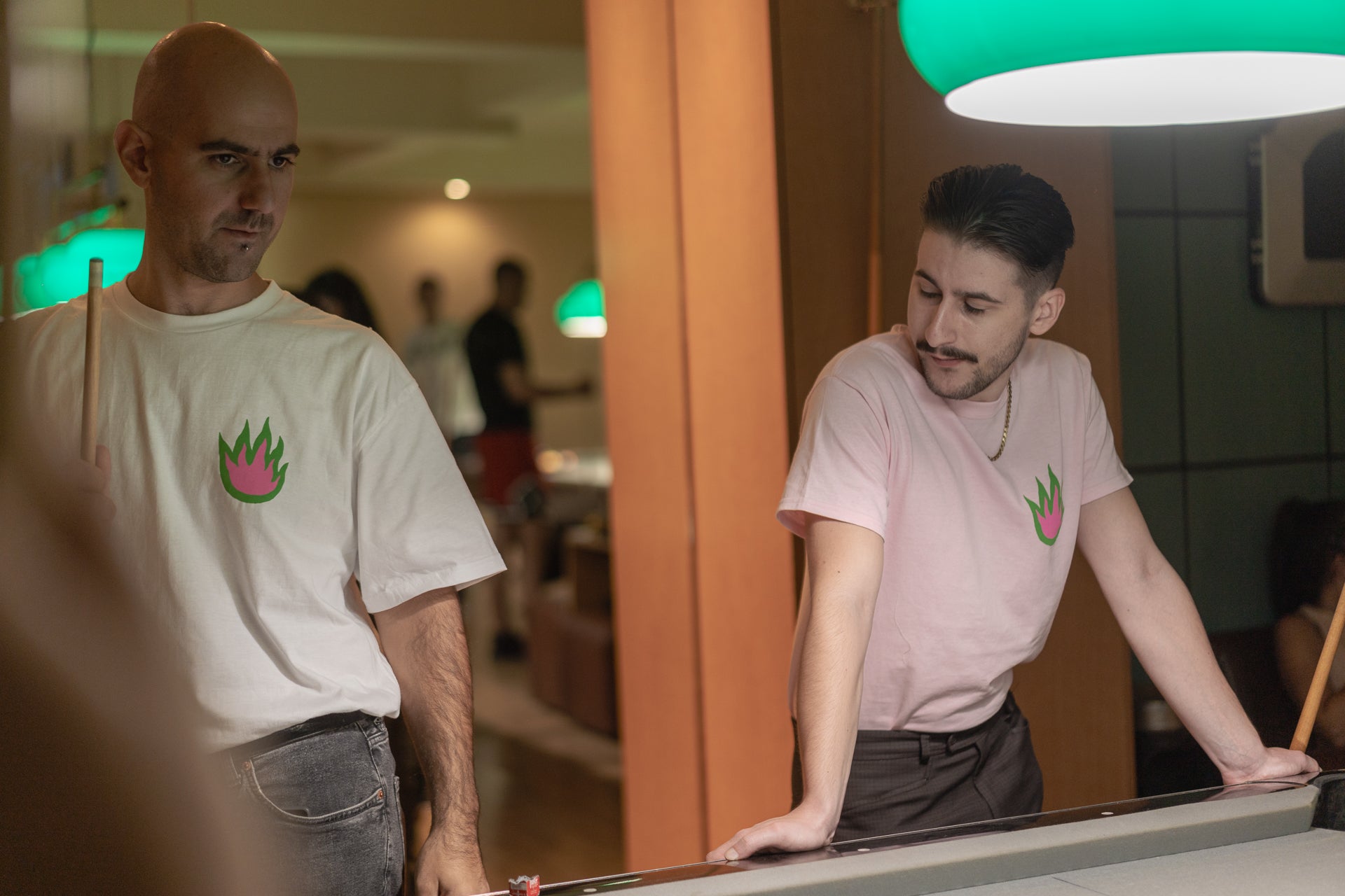 Oversized T-shirt in 2 colours with silkscreen print on both sides. Our iconic huge print on the back and the fire on front.