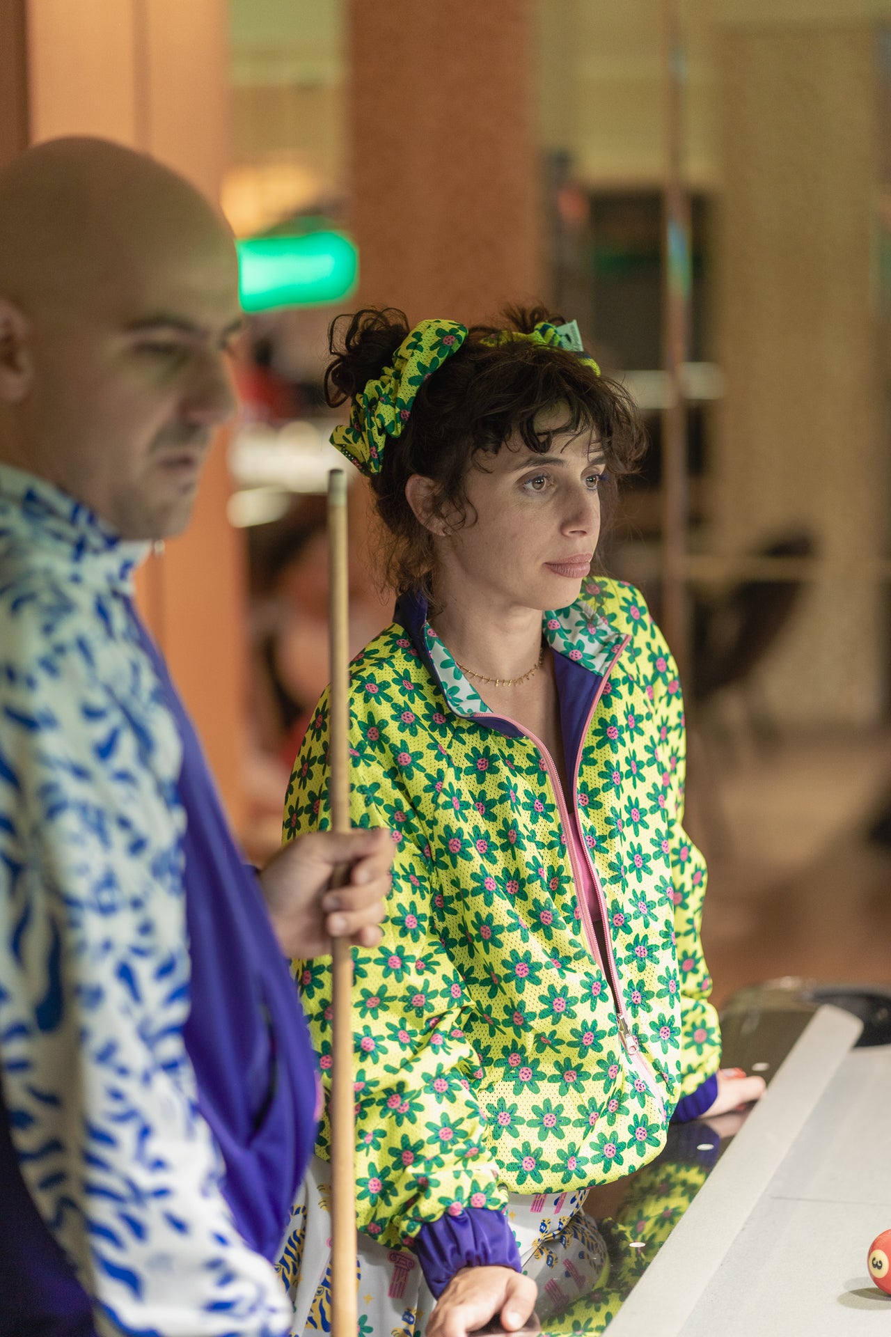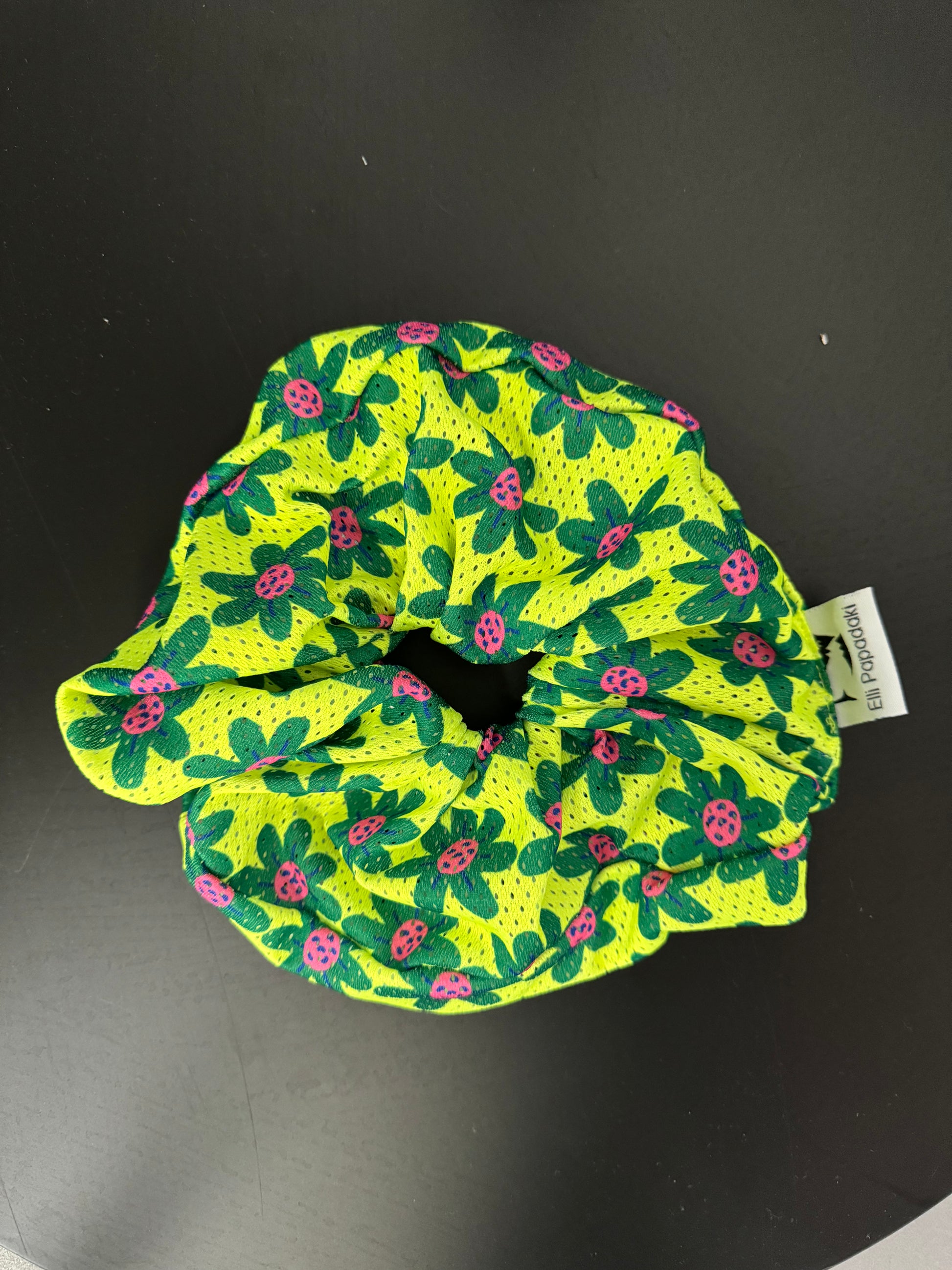 Large fluo scrunchie with printed flowers, like the one side of our jacket! Did you believe that we wouldn't have a match?